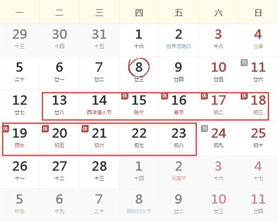 根据国家对2018年节假日放假通知的发布,结合我司实际情况,赢咖8营销中心2018年春节放假安排如下: